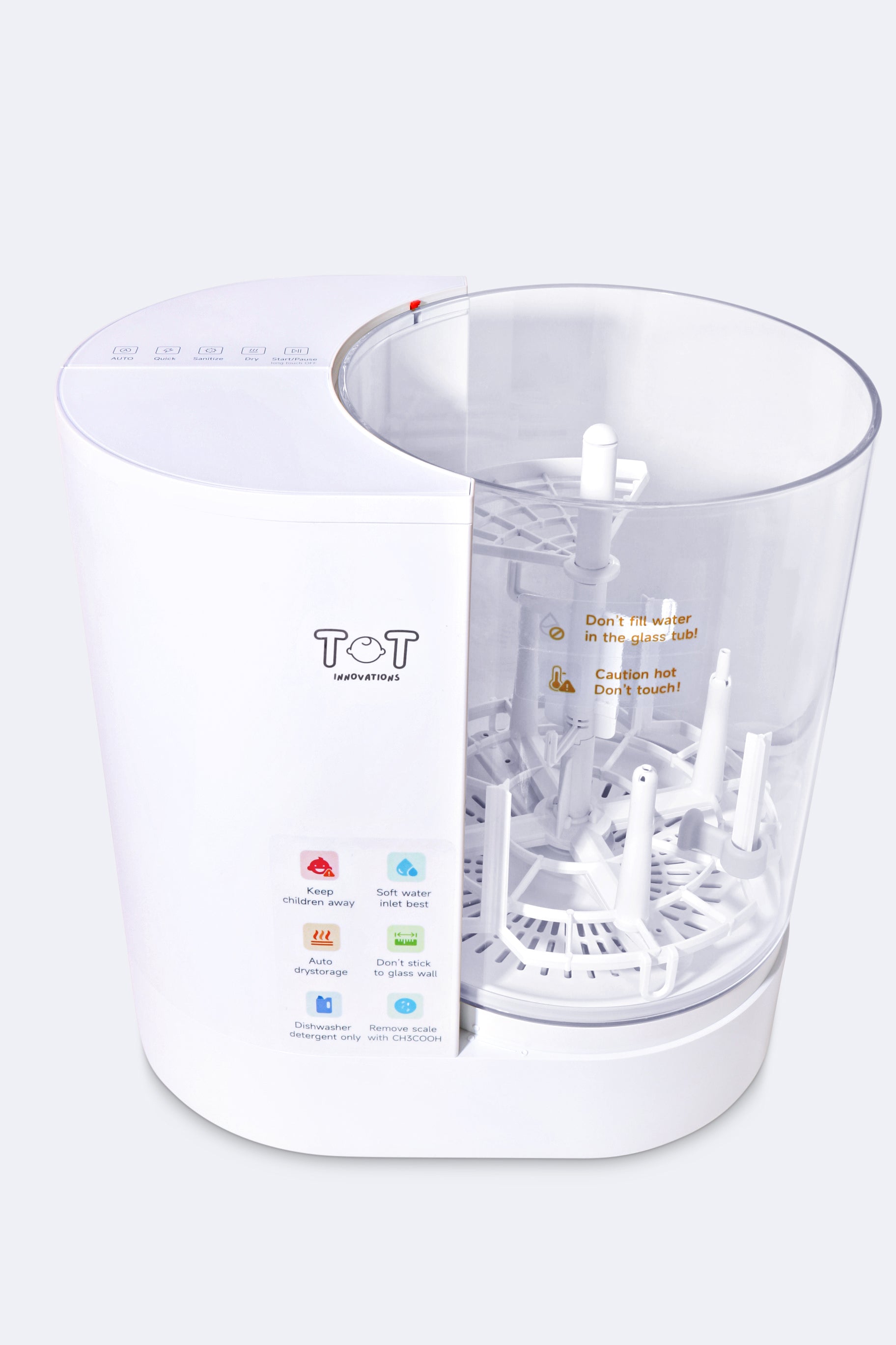 Our bottle washer uses high-temperature steam sterilization to effectively eliminate 99.9% of harmful bacteria - no harsh chemicals needed. It's a safe and natural way to keep your baby’s bottles and accessories clean and germ-free.